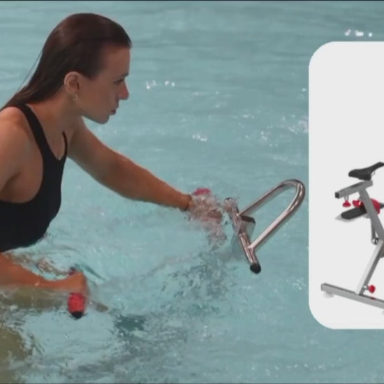 La POOLBIKING MONACO constituye un sistema avanzado para entrenamiento acuático de alta intensidad que permite la activación concurrente de complejos musculares en miembros superiores, inferiores y zona central.