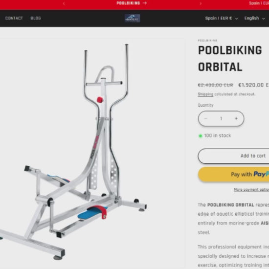 El POOLBIKING ORBITAL representa la vanguardia en entrenamiento elíptico acuático, fabricado íntegramente en acero inoxidable AISI 316L de calidad marina.