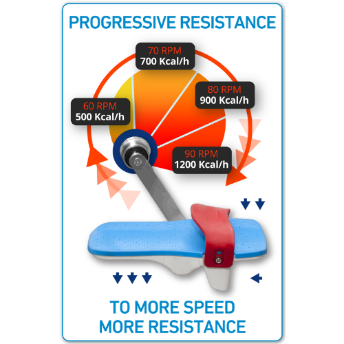 Su estructura con componentes axiales del mismo material, pedales con tratamiento antibactericida y base de 65mm proporciona una combinación óptima de durabilidad y estabilidad. Los sistemas de regulación vertical en sillín y manillar permiten una adaptación biomecánica precisa.