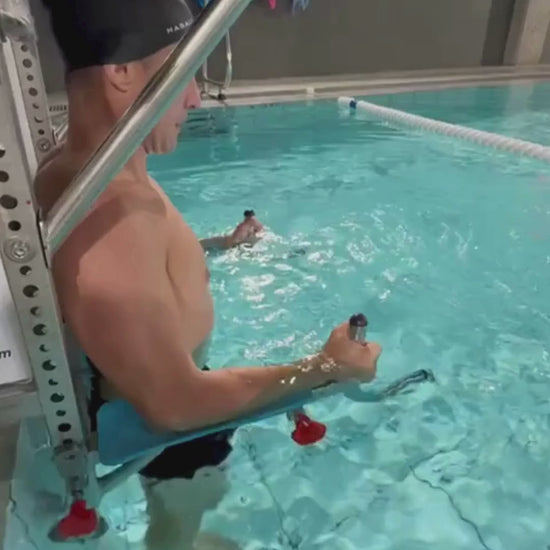 Estructura modular de entrenamiento acuático diseñada para crear estaciones de entrenamiento personalizables en la piscina como dominadas, bíceps, multiejercicios, resistencia, ejercicios con cinta, fondos, abdominales y anclajes con goma, cardio y rehabilitación en el agua, adaptándose a tus necesidades y objetivos.
